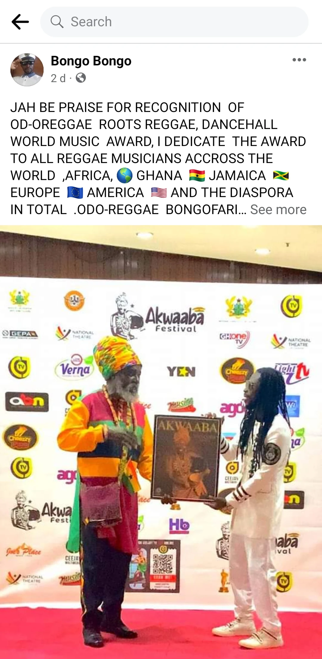 Bongofari the CEO of Bongo Bongo Music Group was awarded with a citation on 9th June 2023 by the organisers of the AKWAABA MUSIC FESTIVAL for his participation in this year's edition.